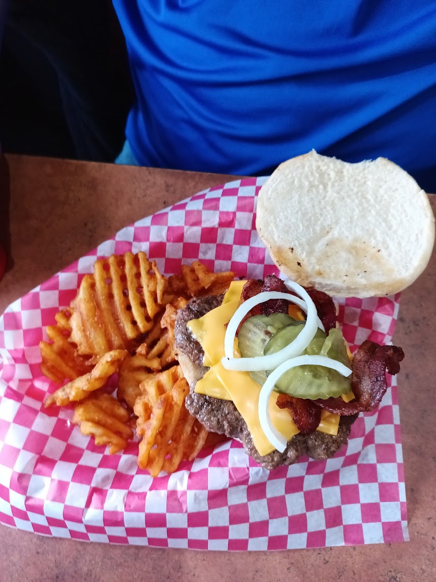 I got the bacon cheeseburger to-go. It was absolutely delicious! The 2 ladies in my office got some chicken salads and they had nothing but great things to say about them. Highly recommend!