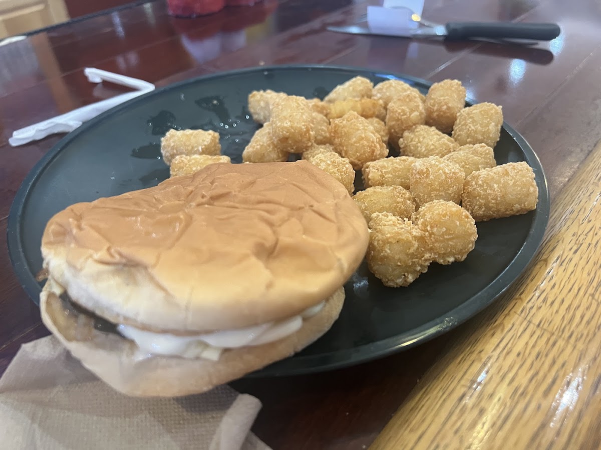 Pork tenderloin was too big for 1 person. Onion rings amazing! Huge drinks. Great value, great food. Kids menu available.
