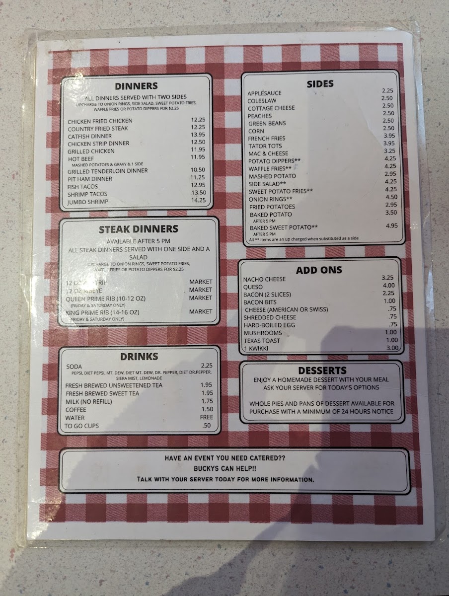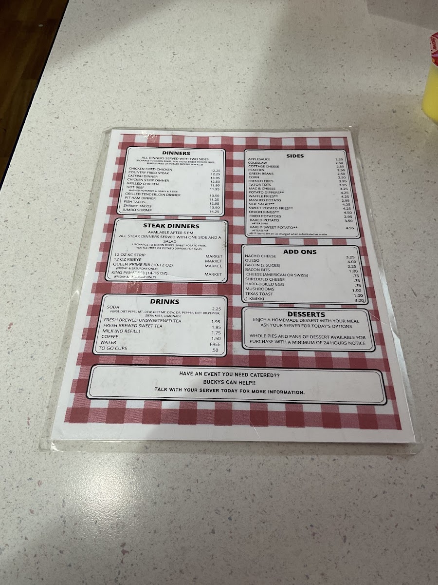 Buckys Sit or Get offers a straightforward, hearty menu that fits perfectly with its friendly, small-town atmosphere. The selections lean toward classic American comfort food, making it easy to find a satisfying meal whether you're stopping by for lunch, dinner, or a casual bite with family.